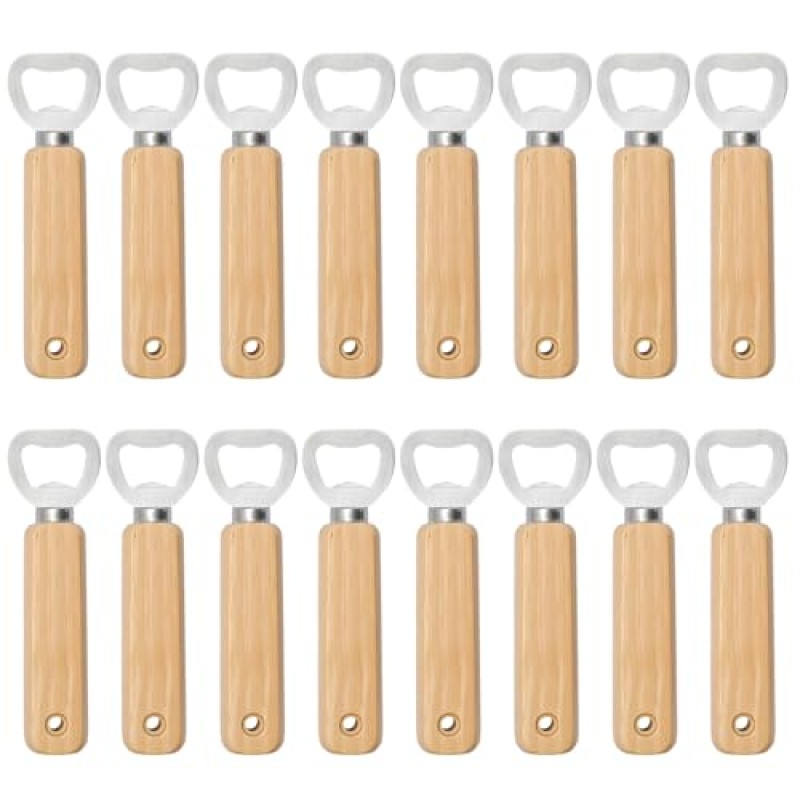 16-Piece Wooden Bottle Opener Set with Engravable Handles