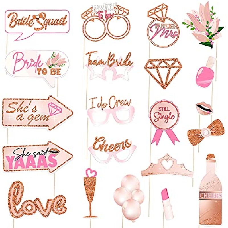 21-Piece Rose Gold Photo Booth Props for Hen & Wedding Fun