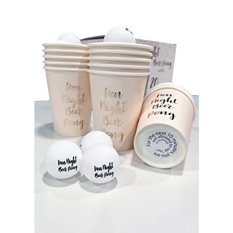 Shake up your stag night with a cheeky twist on a classic party favourite! This Alandra Hen Night Beer Pong set is all about bringing lively laughs and friendly competition to the table. Perfect for splitting into two teams, you line up the 20 gorgeous rose gold cups in a traditional triangle formation at each end. Half-fill them with the drink of your choice, then bounce the ping pong balls trying to land them in your opponent’s cups.