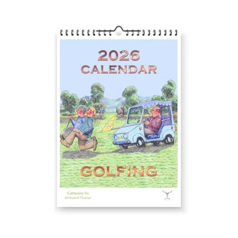 - Includes a full 2026 year calendar featuring amusing golf cartoons by Armand Foster