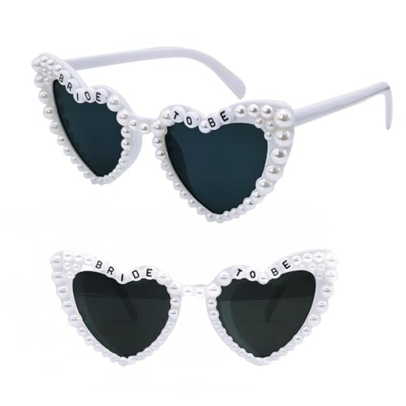 - Unique heart-shaped frames decorated with pearls and "BRIDE TO BE" lettering