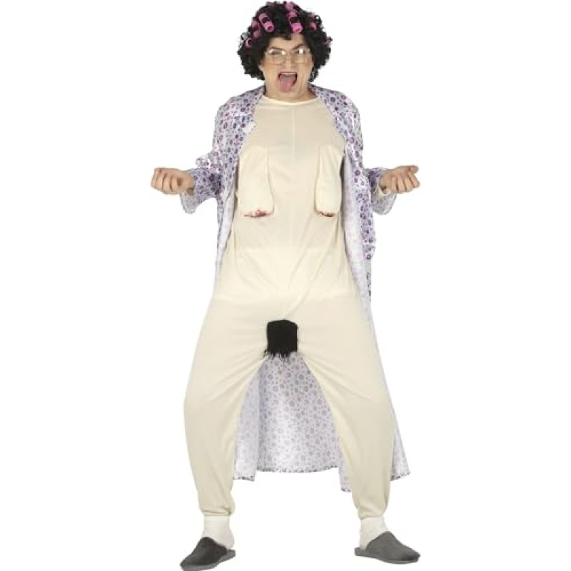 Get ready to turn heads and crack up the crew with this hilarious Crazy Granny fancy dress costume. Perfectly designed for stag dos, it transforms any bloke into a cheeky, sassy old lady ready to steal the show. The outfit includes a night gown jumpsuit that’s easy to slip on, making prep a doddle even when you're buzzing for the big night. Crafted from 100% polyester, it’s lightweight, durable, and comfy enough to keep the banter going all evening. Ideal for themed parties, carnivals, or any stag celebration, this costume guarantees laughs, easy character play, and a lively icebreaker for the group. It fits men’s sizes 38-40 comfortably, meaning it’ll suit most lads looking to up the fun factor without fuss. Whether you’re the groom or just the life of the party, this granny get-up brings practicality, punch, and pure party spirit to the hangout. Just add a cheeky attitude and you’re good to go!