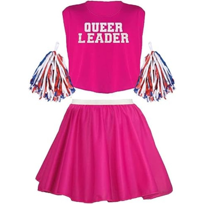 Step up the stag do game with this cheeky Queer Leader fancy dress costume from Dragons Den. Handmade in the UK, this outfit includes a vibrant top, skirt, and randomly coloured pom poms to keep the squad buzzing with energy. Perfectly crafted for comfort and fit, it comes in two adult sizes catering from a 42" to 52" chest, making group coordination a doddle.