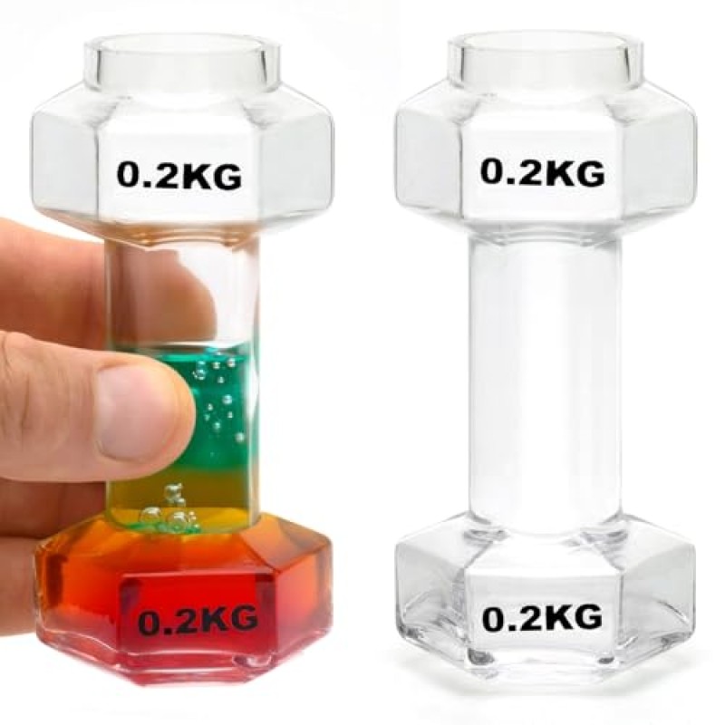 - Set of 2 shot glasses shaped like realistic hex dumbbells