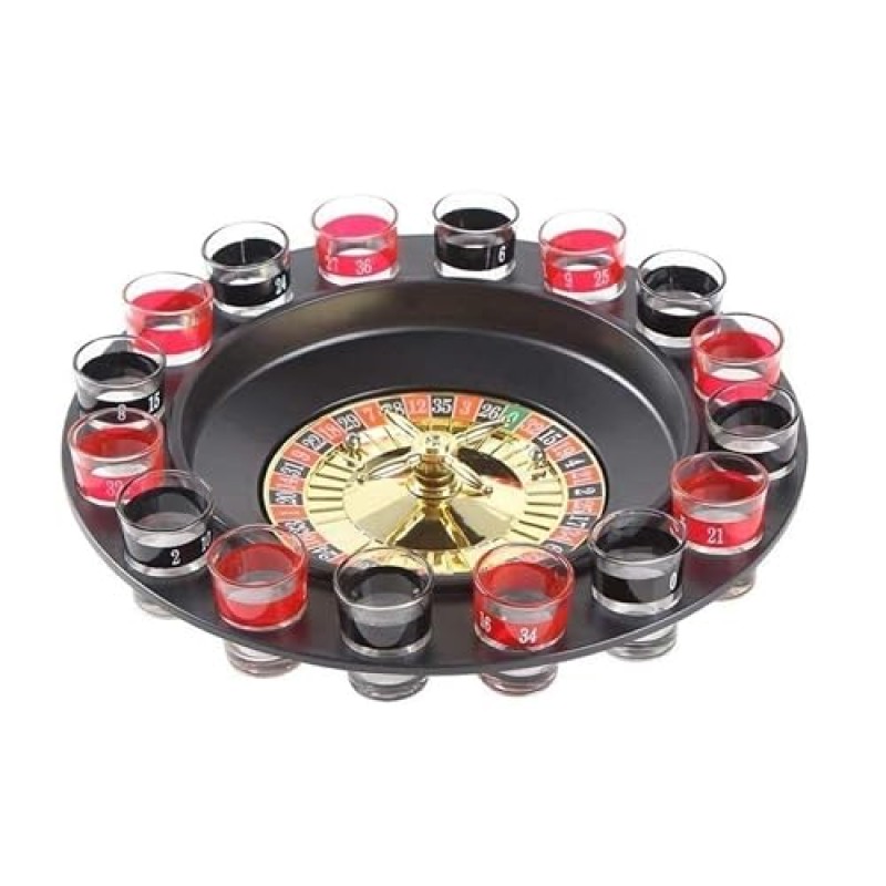 Bring the thrill of the casino to your stag do with the eBoutik Shot Roulette Drinking Game Set. This lively game combines classic roulette excitement with shot-drinking fun, making it a perfect icebreaker that gets everyone laughing and joining in. Featuring 16 numbered shot glasses coloured in black and red, plus two metal balls for an authentic spinning roulette wheel experience, it’s designed to add a cheeky edge to your celebration. Easy to set up and quick to get started, the compact design means it won’t hog your space and is simple to transport to wherever the party’s at. Whether you’re kicking off the evening or keeping the energy up between activities, this game effortlessly elevates group fun. Crafted from sturdy materials, it’s built to survive plenty of spirited rounds. Just spin the wheel, watch where the ball lands, and down your shot—simple, social, and seriously good fun.