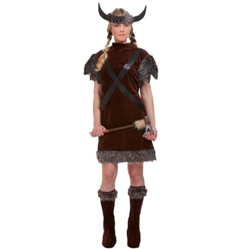 - Women's outfit: stylish Viking dress, belt, horned headband, boot covers