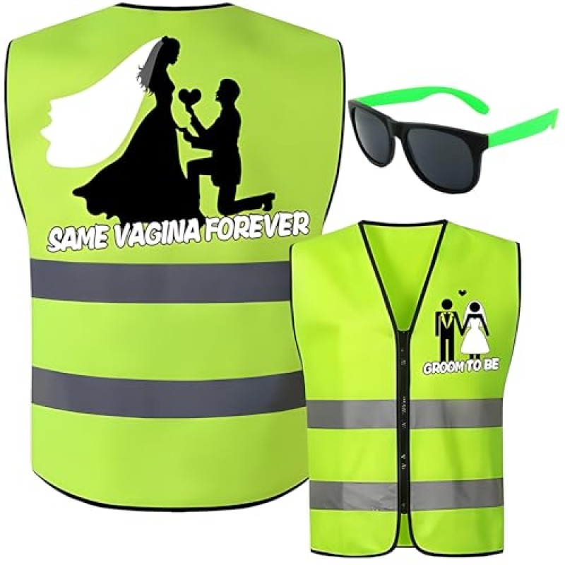 - Includes fluorescent green reflective safety vest and matching sunglasses