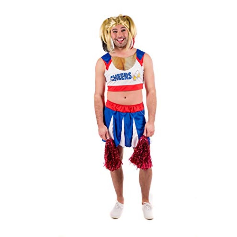 Get the lads laughing with this cheeky male cheerleader costume from Fun Shack, designed especially for stag parties where fun and flair are the top priorities. This high-quality outfit includes a multi-coloured cheerleader top, a short skirt, and red pom poms, complete with humorous printed fake boobs to really turn heads. Made from breathable, stretchy materials, it offers all-day comfort whether you're cheering on the groom or taking centre stage yourself. Reinforced stitching means it's built to survive the wildest stag antics, indoors or out. With sizes ranging from Medium to XL and a handy size chart to ensure the perfect fit, slipping into this costume is a quick, fuss-free way to inject some lively spirit into the celebrations. It’s lightweight, easy to wear, and guarantees plenty of laughs for the group, making it a brilliant choice for any stag do looking for a memorable and hassle-free outfit option.