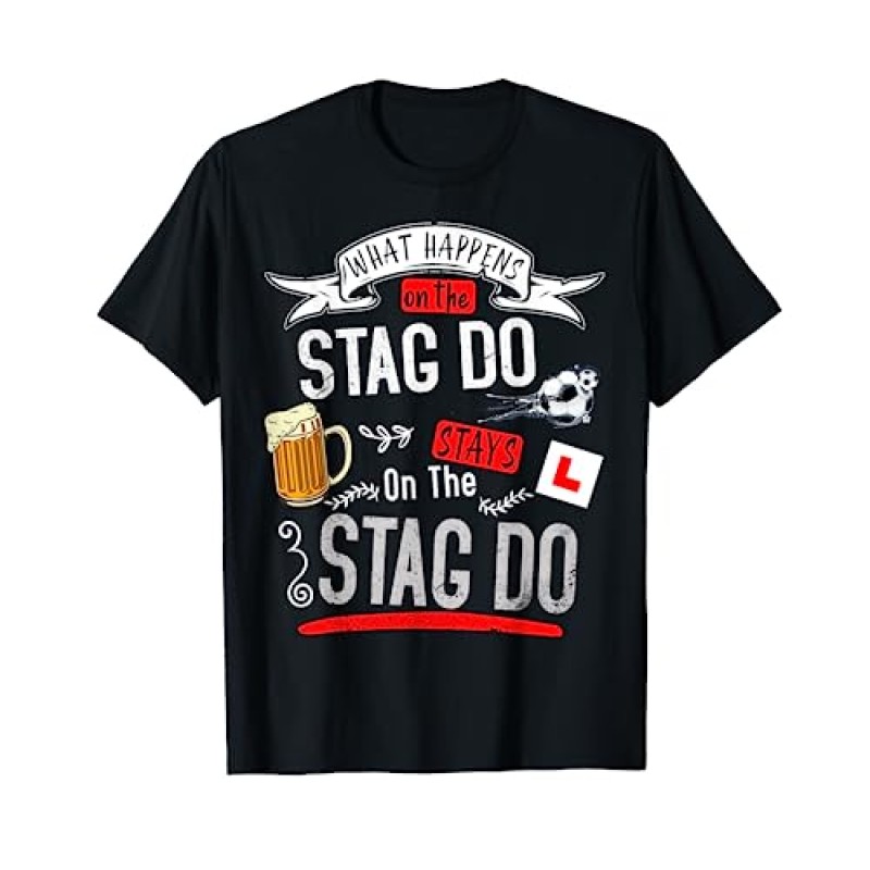Get the crew together with this cheeky matching stag do outfit featuring a hilarious 'What Happens on the Stag Do' design. Perfect for the groom and his lads to wear proudly while painting the town red in classic party hotspots like Blackpool, Bournemouth, or Liverpool. These lightweight, classic fit T-shirts keep things comfy and sharp, thanks to durable double-needle sleeves and hems that withstand all the moves on the dancefloor.