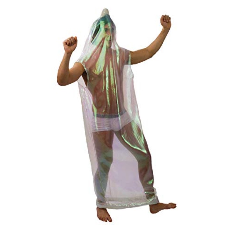 Lighten the mood and spark plenty of laughs with this outrageous Giant Condom fancy dress costume. Designed for top-notch stag do banter, it’s a sheer bodysuit with arm holes and a wide base that makes it easy to wear and move around in, even when the party’s in full swing. Perfect for groups looking to inject some cheeky fun without stress, it fits most with a one-size design up to a 44-inch chest.