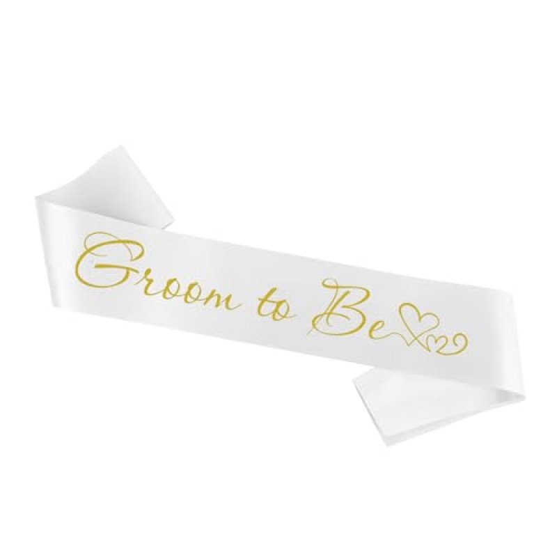 - Made from soft white satin with sparkling gold foil ‘Groom To Be’ lettering