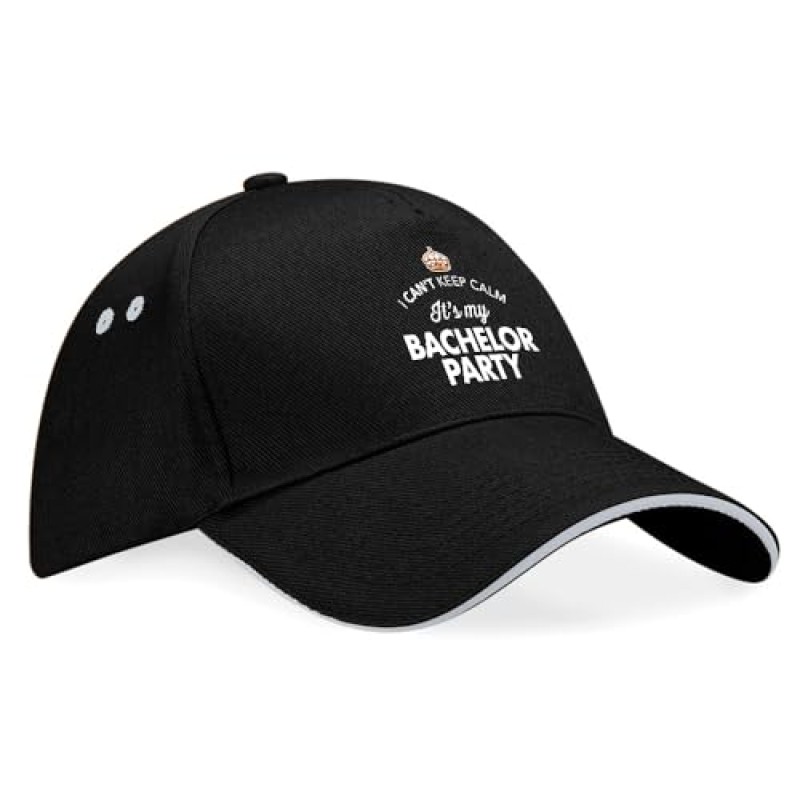 Here’s a top-notch stag do essential: a sharp, classic baseball cap crafted from 100% breathable cotton twill. This cap isn’t just a stylish nod to the groom’s big day, but a practical keepsake designed for comfort and laughs. Adjustable to fit every head, it boasts a curved peak and handy ventilation eyelets, so it’s comfy whether you’re outdoors cheering the groom on or hitting the town with the lads. Featuring an exclusive hand-drawn wedding design printed boldly on the front, it adds cheeky flair to any stag party outfit.
