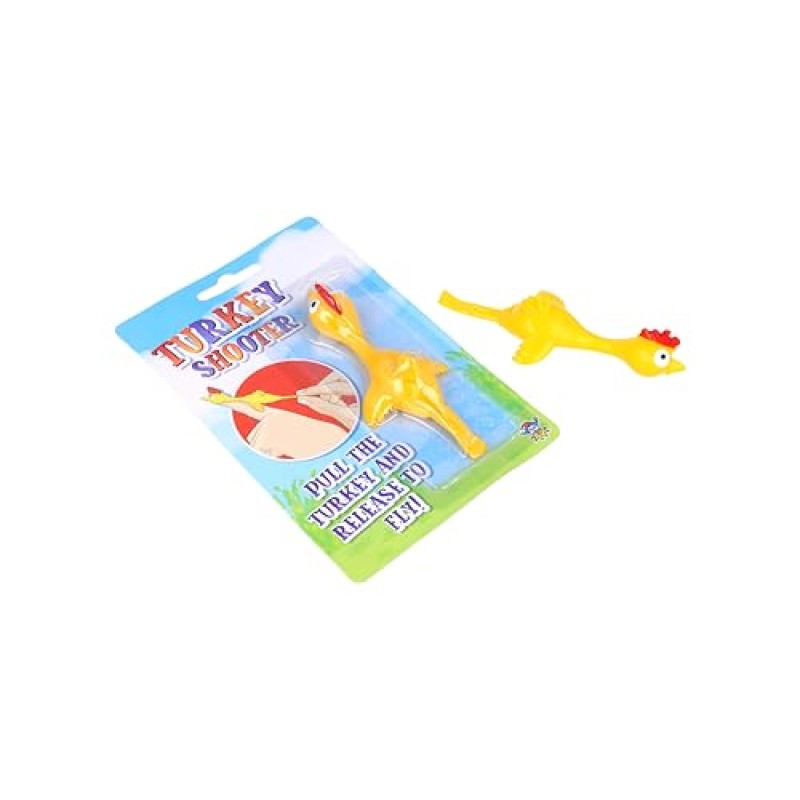- Pack contains 2 stretchy finger slingshot toys shaped like yellow turkeys
