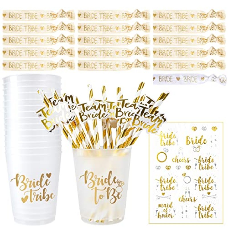 - Includes 1 ‘Bride To Be’ cup and 15 ‘Bride Tribe’ cups in gold
