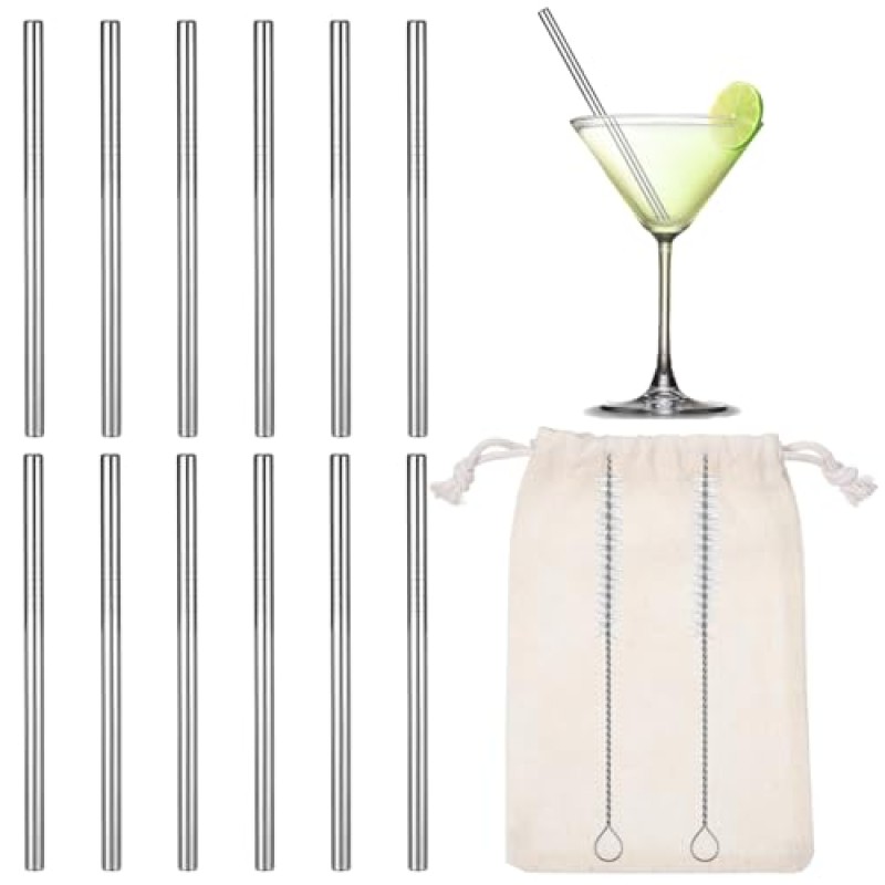 JIEYAO Stainless Steel Cocktail Straw Set – 12-Pack