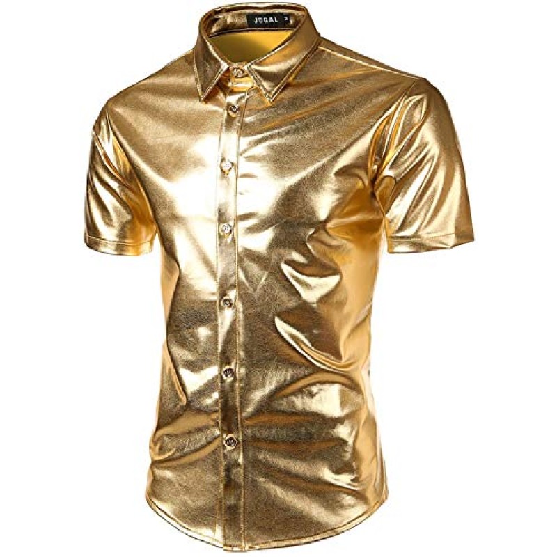 JOGAL Men's Metallic Short Sleeve Party Shirt