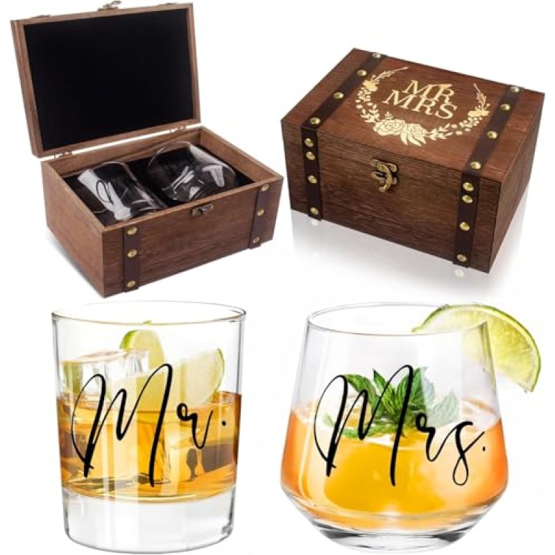 Raise a toast to lasting love with this charming wedding glass set that comes nestled in a sleek wooden keepsake box. Perfect for stag do nights that segue into engagements or celebrations of couples, these glasses carry the elegant Mr & Mrs motif to bring a sophisticated, romantic vibe to the party. Designed not just for coffee but for any tipple—from juice to milk—these versatile cups are ideal for morning after refreshment or a cosy anniversary drink.