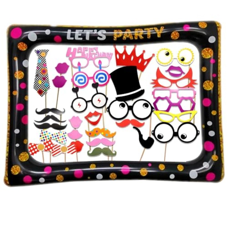 JZK Party Photo Booth Props Set with Inflatable Frame