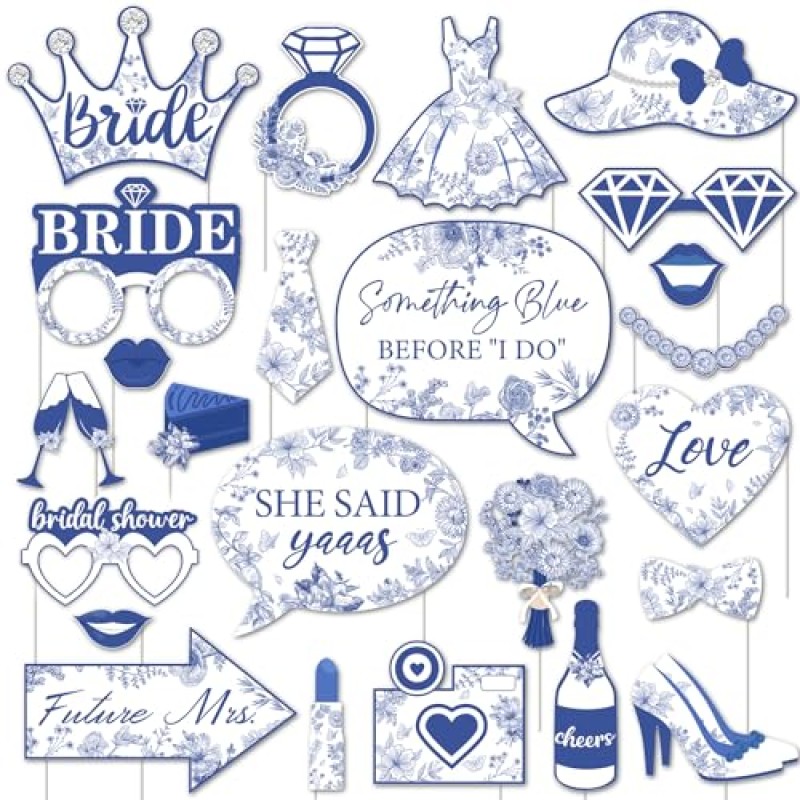 - Contains 24 distinct bridal-themed photo booth props