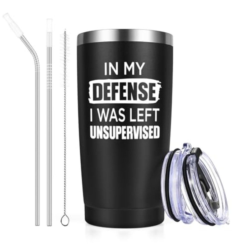 This cheeky double-wall travel coffee mug is a brilliant stag do essential for keeping spirits high and drinks just right. Featuring the playful slogan ‘In My Defence I Was Left Unsupervised’, it’s tailored for the lads who appreciate a bit of fun alongside their brew. Crafted from high-quality 304 18/8 food grade stainless steel, it’s tough enough to handle all those early morning coffees or post-event hot drinks without any unwanted flavours sneaking in.