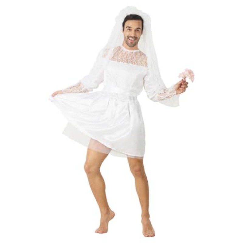 Ready to steal the show and rack up the laughs on your stag do? This cheeky men's white bride costume is your ticket to being the centre of attention. Imagine strutting into the party in a flowing white wedding dress complete with a veil and train – a hilarious twist that’s perfect for stirring up banter and unforgettable memories. Crafted from quality materials, it comfortably fits most adult men and slips on easily, so you can get straight to the fun without fuss. Whether you’re the groom-to-be with a sense of humour or the ultimate prankster in your crew, this costume amps up the entertainment and guarantees plenty of giggles. It’s specially designed for party vibes, hen nights, stag dos, or any fancy dress occasion where standing out is the name of the game. Just remember, this outfit is all about laughs and isn’t meant for the actual altar – but it’s spot on for creating stories you’ll be telling for ages.