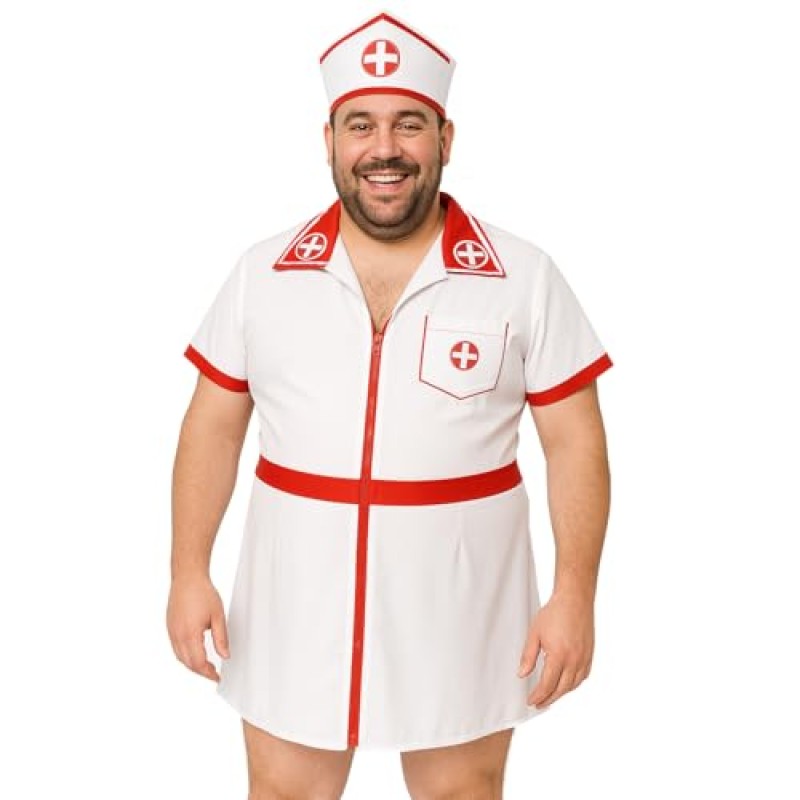 Step up as the life-saving star of your stag do with this cheeky Mens Nurse Costume. Designed to bring laughs and lively vibes, this outfit features a short white dress with a striking red cross zip-up front, complete with a matching nurse hat for the full look. Although it’s a ladies’ dress, it’s sized for men and crafted to slip on easily, offering comfort and authentic style. It’s a brilliant choice for fancy dress nights, stag dos, and themed parties where you fancy yourself the ultimate party medic ready to heal boredom with dance and good fun. No fuss, no complicated setup—just pop it on and get your crew buzzing.