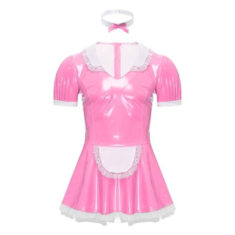 - Includes: 1 patent leather-effect mini maid dress with front apron and neck ring