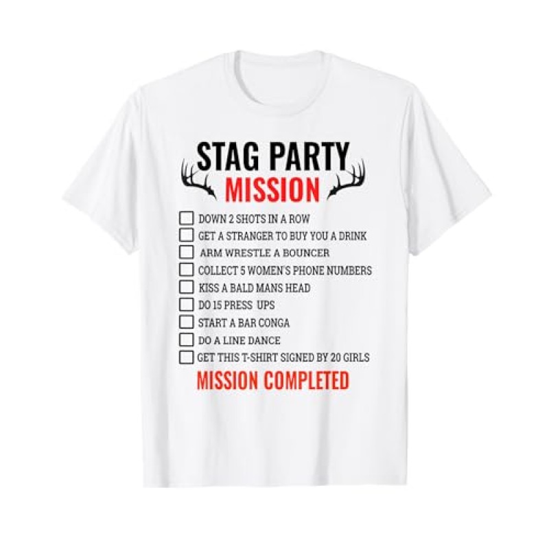 Lightweight and boasting a classic fit, it’s comfortable enough for a sleepless night of fun yet durable enough to handle all the shenanigans. The double-needle sleeve and bottom hem add extra quality, so it’s a keepsake as much as a conversation starter. The tick-boxes let the whole group track the groom’s progress, turning a simple t-shirt into a practical and hilarious party tool that brings everyone together with a shared goal: make memories and have a blast.