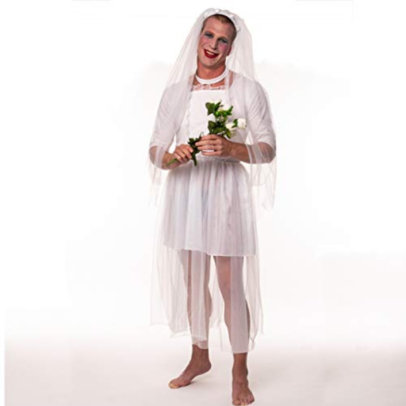 Get the stag party laughing with this cheeky men's wedding-themed fancy dress costume. It includes a fun dress, veil, and neck choker, making it a brilliant outfit for the groom or any willing volunteer to don. Perfect for those who want to bring some lighthearted wedding vibes to the night, it promises plenty of photo opportunities and banter. The costume is easy to slip on, making it great for quick changes and spontaneous fun. With clever sizing that fits up to a 42" chest and a comfortable 50" dress length, it suits most gents. The 38" veil completes the look and adds that extra playful touch to keep the group's energy high and the laughs rolling. This fancy dress is a fantastic addition to any stag do looking to mix up the entertainment in style.