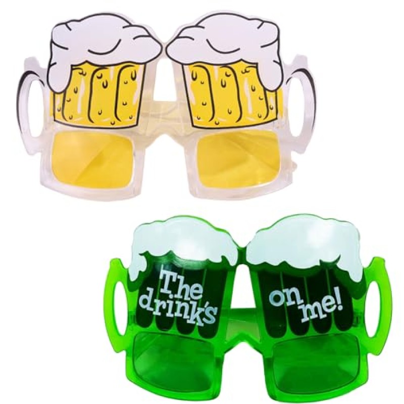 - Includes 2 beer-shaped sunglasses in yellow and green