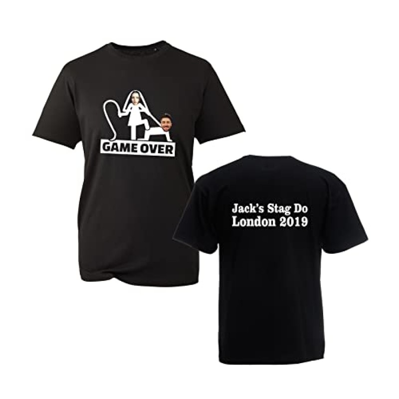 Get the groom looking sharp and cheeky with this personalised ‘Game Over’ stag do t-shirt. Crafted from 100% premium cotton, it’s soft, comfy, and perfect for hours of group antics. You can customise it with the name and image of your choice, making it a brilliant keepsake for the big day. The regular fit means it suits most body types, and machine washable fabric makes cleaning up after the celebrations a breeze. Whether it’s worn at the pre-night warm-up or the after-party, this tee adds a dash of humour and personal touch. Quick to size up and easy to order, it’s a smart addition for any stag crew looking to keep things fun, unified, and photo-ready.