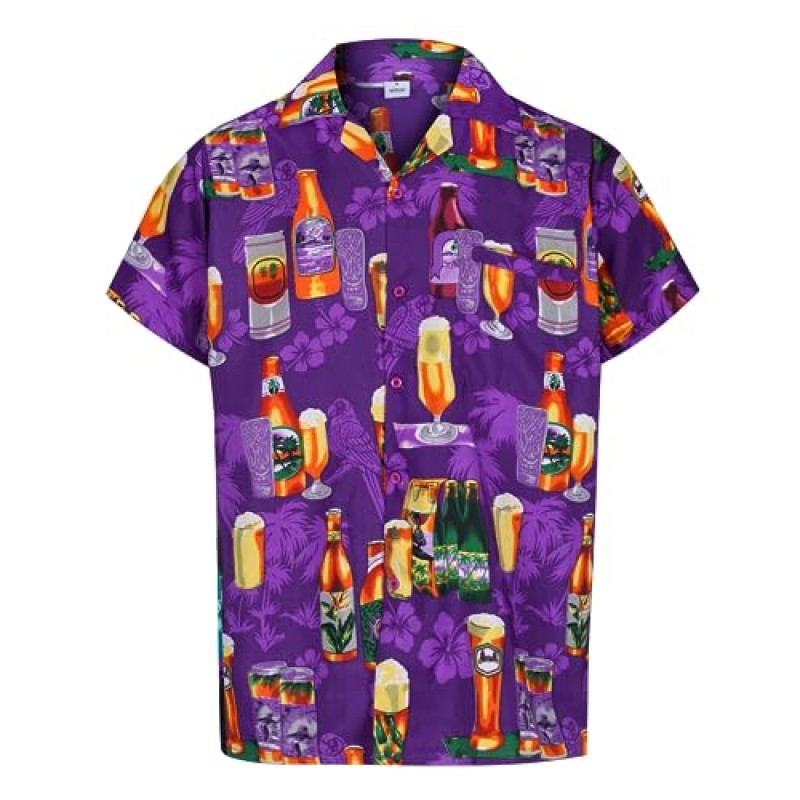 The vibrant colours and playful beer-themed Hawaiian print add a dash of humour and light-hearted style, making it a brilliant conversation starter and a group favourite for laughs. Available in sizes S to XXL, it’s easy to get the perfect fit for anyone in the crew. Just check the size guide and you’re good to go!