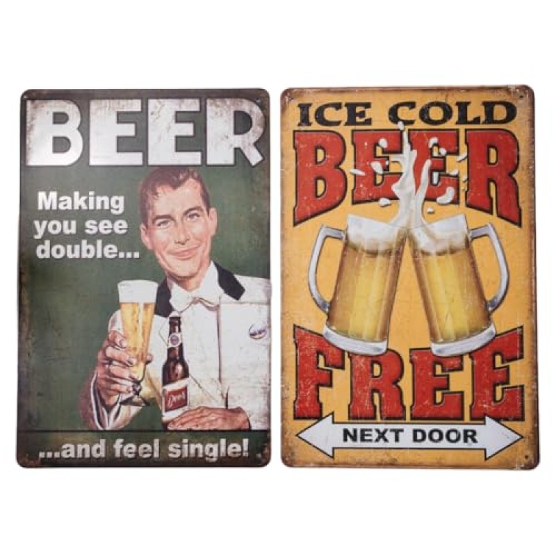 Set of 2 Retro Metal Beer Bar Signs