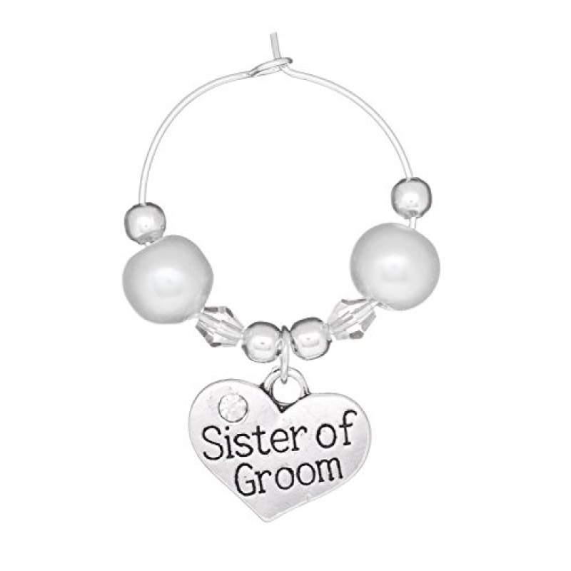 - Heart-shaped rhinestone 'Sister of Groom' charm