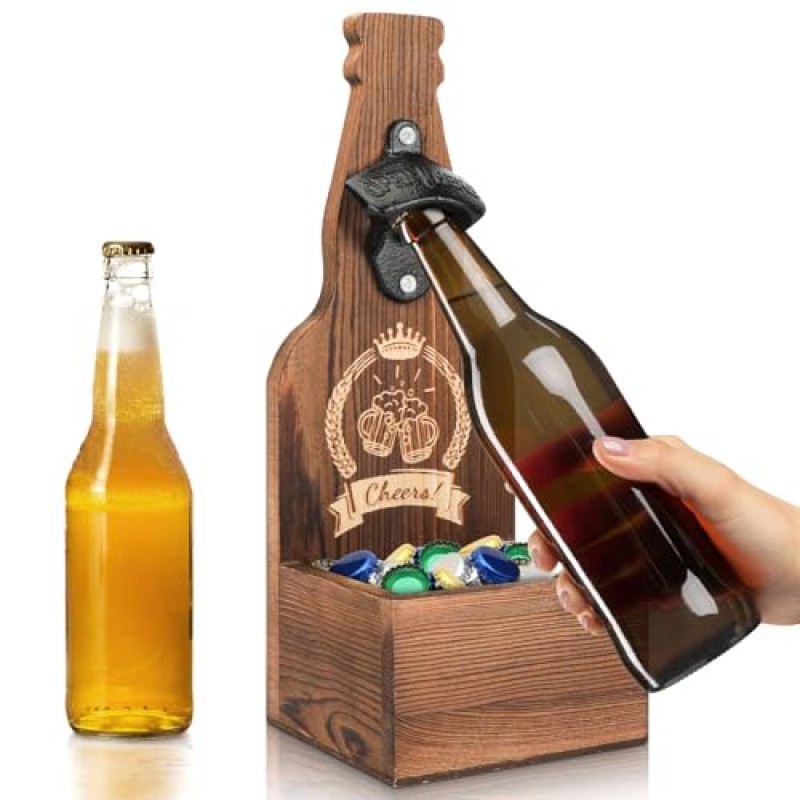 Add a splash of retro charm to your stag do with this vintage-style wall-mounted bottle opener. Crafted from smooth-edged wood with a laser-engraved 3D pattern that won't fade, this sturdy accessory not only opens bottles with a handy one-handed design but also catches caps in its neat wooden box, making tidying up as effortless as the drinks flow. Perfect for kitchens, patios, or home bars, it’s a practical and stylish tool that keeps the party vibe going.